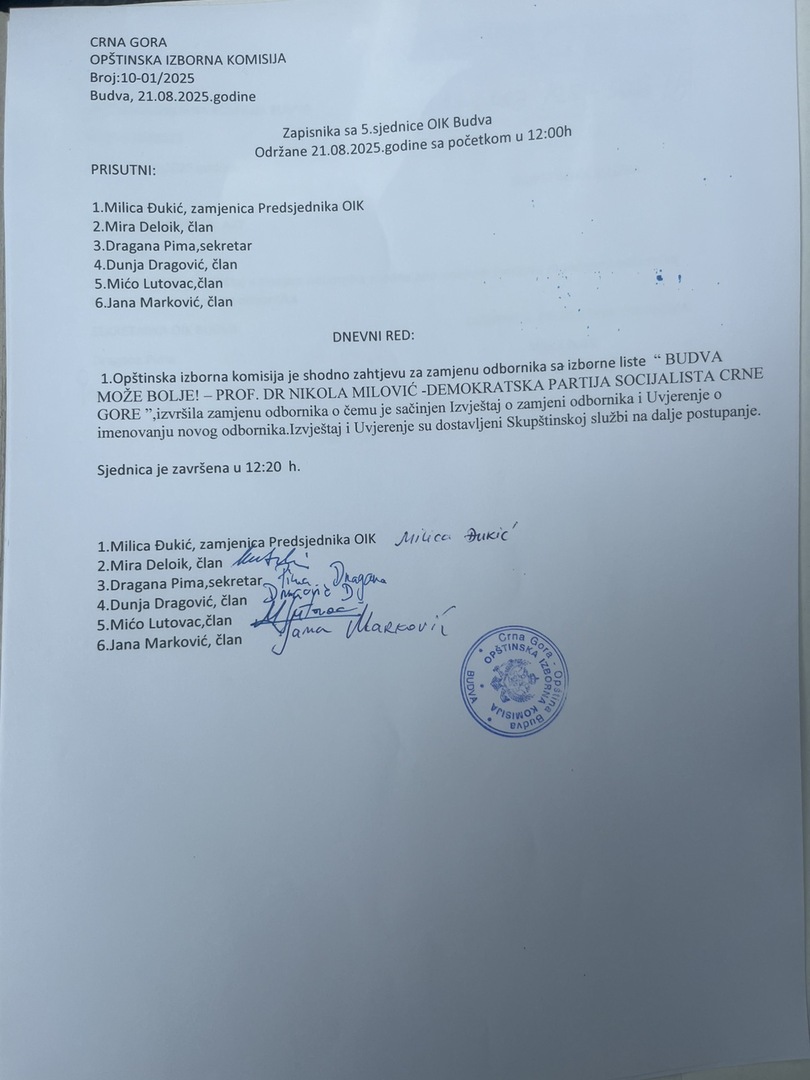 Zapisnik sa VI sjednice OIK Budva